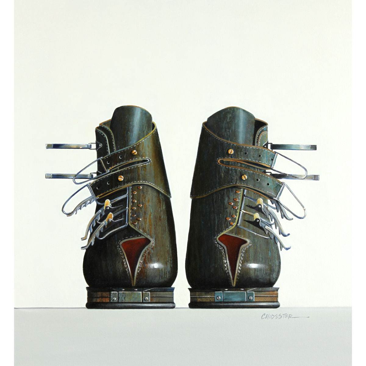 Wendy Chidester currently works out of her two studios in Salt Lake City and in Helper, Utah.She studied drawing and painting at the University of Utah, graduating with her BFA in 1988, and at the Helper Art Workshops in 2007. She has won several local and national awards and has her work in corporate and private collections worldwide.Painting is Chidester’s passion. “When hunting for still life material, I find myself drawn to the abandoned and neglected objects of yesterday. In today’s fast paced, high tech world an incredible array of well worn tools, gadgets, and mechanical gems have been overshadowed and left behind. These are the subjects for my paintings, and I love the challenge they present.”To capture the beauty and soul of old inanimate objects, scratches, dents, and worn edges are important. In order to add depth and the perception of age, Chidester incorporates several application processes, including scratching the surface, flicking of paint, and the old master’s technique of glazing until the desired effect is achieved. “At times I feel as though I’m treating the painting in the same way the objects have been treated.”With each completed painting, Chidester contributes to recorded history. Memories are brought back to life as Chidester immortalizes the vintage subject matter she paints on canvas.